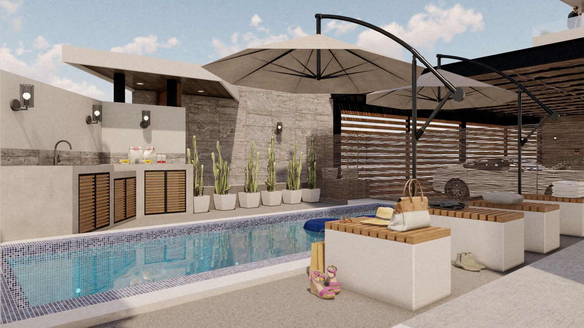 - Alberca de uso común diseñada para disfrutar del clima de Cabo.