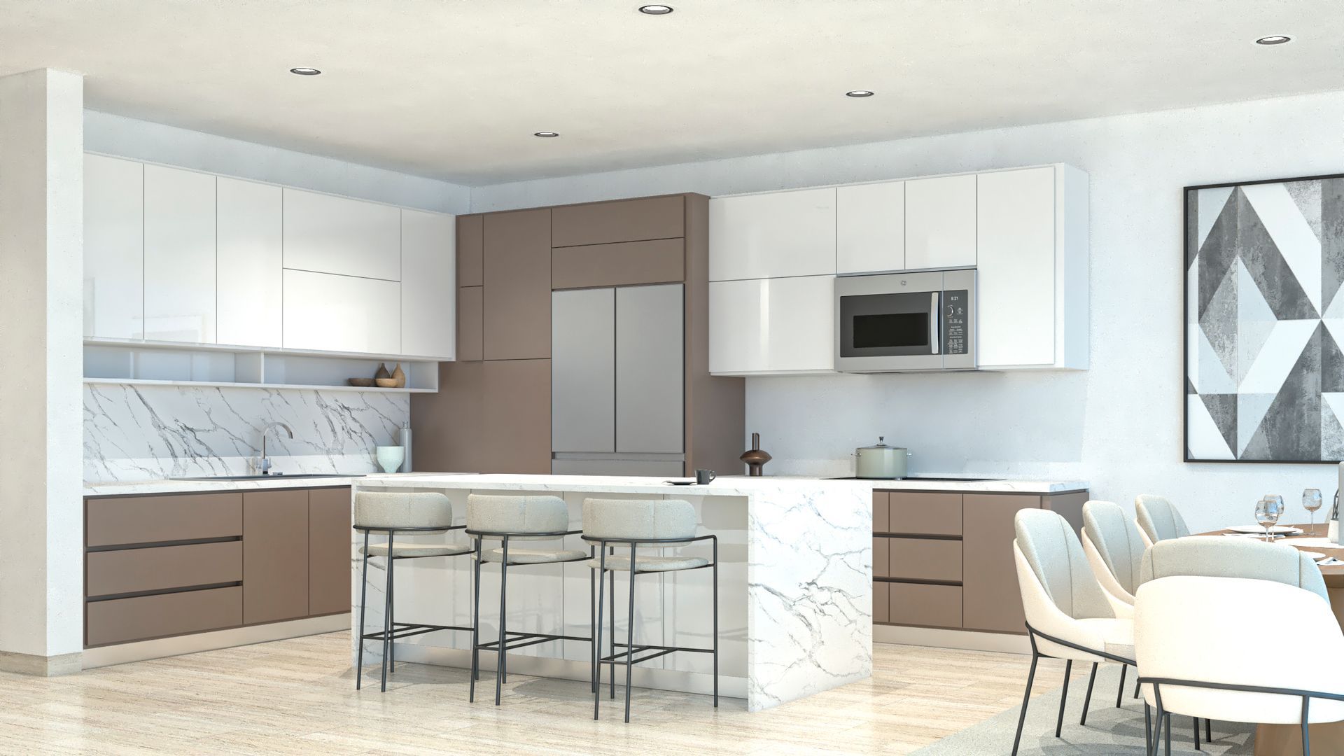 Los condominios de Solara del Mar combinan diseño contemporáneo con una sensación real de amplitud. Sus distribuciones inteligentes aprovechan la luz natural y abren los interiores hacia terrazas pensadas para disfrutarse diario, creando una experiencia interior-exterior muy propia de Cabo. Cada unidad se siente cómoda y bien resuelta, con materialidad cuidada, funcionalidad y elegancia discreta: espacios listos para acompañar tanto una vida cotidiana como estancias largas con privacidad y confort.